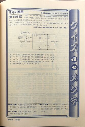 理解を簡単にするため、下図のようにC3の位置を変え、電源を直流電源&SWにする。 (1)電源電圧が下向きのVのとき、C1とC3が充電され、各々の電圧はVとなる。 (2)電源電圧が上向きになると、C1に充電されていたqの一部がC2を充電する。電源が正負を繰り返した…